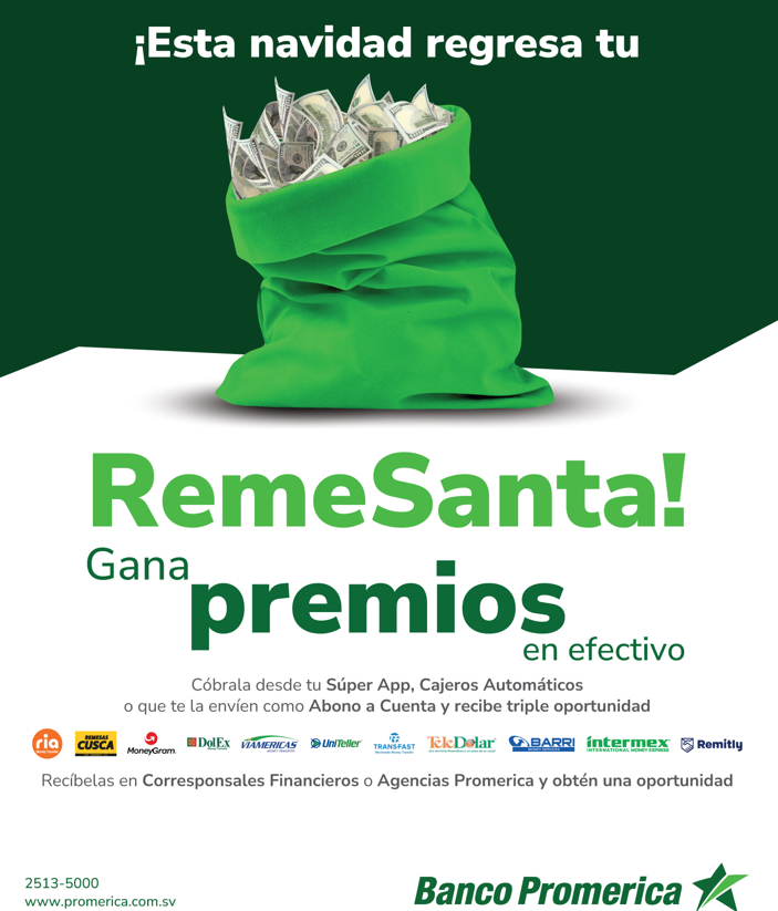 - Para mayor detalle del sorteo puedes consultar en cualquier Agencia del Banco Promerica, llamando al 2513-5000 o escribiendo al correo soluciones@Promerica.com.sv.