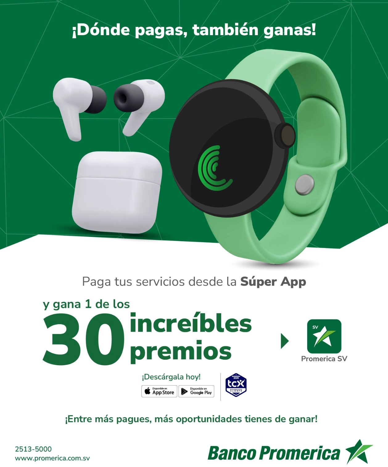 - Cada pago de servicios realizado en la Súper App equivale a una oportunidad para participar; se premiarán 5 ganadores por semana, para un total de 30 ganadores durante las seis semanas de la promoción.